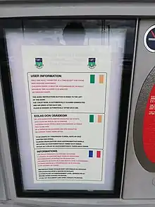 Some Euronet ATMs (automated teller machines) display the Irish flag as a symbol for the English language (usually UK flag or English flag). In the media, this was speculated to be a response to Brexit, with the Republic of Ireland as one of the only two Anglophone nations left in the European Union (another being Malta). Dr. Oetker have been observed doing the same.[7] The Irish flag is more usually used to signify the Irish language.[8]