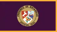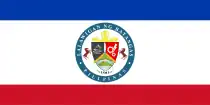 The flag of Batangas is the provincial flag of Batangas, Philippines. It is a horizontal triband of blue, white, and red — the main colors of the Philippine flag — with the escutcheon taken from the provincial seal in the center.[1]