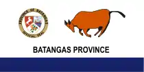 The previous flag of Batangas was predominantly white with a narrow blue stripe at the bottom. This stripe was surmounted by the words "BATANGAS PROVINCE" and a gold-colored bull, courant toward the provincial seal located on the upper part of the fly. This flag was replaced due to its resemblance to the flag of the U.S. state of California.[2]