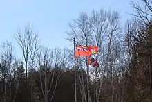 ![]() | 1975–present[note 1] | Franco-Ontarian flag | A vertical bicolour of green and white; charged with a white fleur-de-lys centred on the green portion and a trillium centred on the white portion |