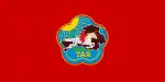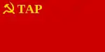 1941–1943 | 1:2 | Tuvan People's Republic | In solidarity with the Soviet Union after the German invasion, Tuva changed its flag in the newly adopted constitution of 1941, to more resemble the flags of the Soviet republics.[2][3] The flag uses the initials of the state (Tıwa Arat Respublik)
