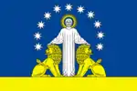 | Design | Red field with two vertical stripes at the hoist, charged with the statue The Motherland Calls. |