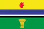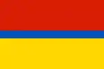 The flag of Volgograd Oblast, a federal subject of Russia, was adopted in June 2000. The flag is a field of red (representing the courage and blood of those who fought for Russia and the oblast) with two blue vertical stripes (representing Volga and the Don rivers) at the hoist, and charged with an illustration of the statue The Motherland Calls.[3] The ratio of the flag is 2:3.