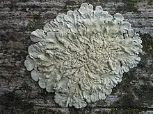 - ↑ Hale, M.E. 1986. "Flavoparmelia, a new genus in the lichen family Parmeliaceae (Ascomycotina)". Mycotaxon. 25 (2): 603–605.