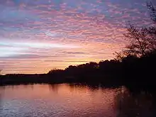 This large and shallow lake, fed by Fleet Brook,[5] is surrounded by reed beds, alder carr and oak and birch woodland. The lake has a rich aquatic flora and fauna, including large populations of reed warblers and other wetland birds.[6]