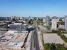 Celestica's manufacturing plant, which once sat at 844 Don Mills Road, was demolished in late 2018 to make way for Crosstown by developers Aspen Ridge homes. The site will feature a 100,000 square-foot recreation centre, townhomes, over a dozen luxury condominium suites, and retail spaces.[14]