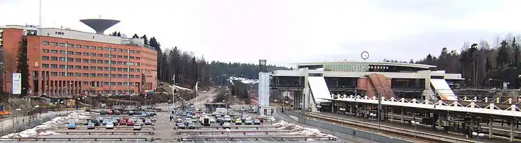 There is a railway station (Flemingsberg, formerly Stockholm Syd Flemingsberg), a major hospital, a university college and there are also colourful high-rise residential buildings from the 1970s.