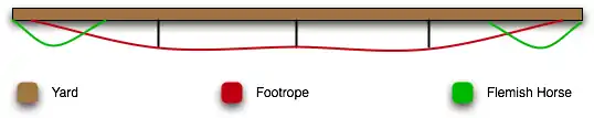 The Flemish horse, being at the outer end of the yard, often made of thinner rope and attached only at its ends,[3] is somewhat unstable compared with the main footrope. This, together with the requirement to step off the main footrope in order to get onto it means that a place on the Flemish horse is generally reserved for the more experienced sailors working on a yard.