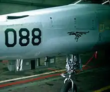 Fliegerstaffel 1 emblem on F-5E Tiger II with the number J-3088; On the aircraft is only the bird Rokh, without red background.