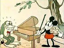 Flip the Frog is an animated cartoon character created by American animator Ub Iwerks. He starred in a series of cartoons produced by Celebrity Pictures and distributed by Metro-Goldwyn-Mayer from 1930 to 1933.[1] The series had many recurring characters besides Flip, including Flip's dog, the mule Orace, and a dizzy neighborhood spinster.