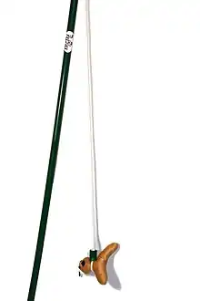 A flirt pole, also called a "flirt stick", is a piece of exercise equipment for dogs that entices a dog to chase a fast moving lure. This equipment is often used to physically condition a dog and improve the dog's skills for better performance in certain competitions such as lure-coursing or Schutzhund. It is often used simply to get a dog to exert a lot of energy in a small space.