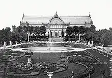 The garden dates to 1863 when a private company was organized to create Flora park (5.5 hectares) as a replacement for the city's older botanical garden near the Cologne Cathedral, which in 1857 was destroyed for construction of the central railway station. This new park was designed by Peter Joseph Lenné in 1864 in a mixed German style, incorporating French Baroque, Italian Renaissance, and English landscape garden elements. In its center is a glass palace (orangery) structure of cast iron and glass patterned upon the Crystal Palace (London) and Jardin d'hiver (Paris), which served as an exhibition site through the late 19th century, including horticultural exhibitions in 1875 and 1888, and an industrial exhibition in 1889. Frauen-Rosenhof, an art nouveau garden, was added in 1906.