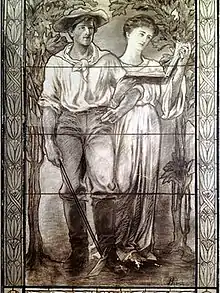 In 1911, Brillinger took a job as a designer for J. Horace Rudy, maker of stained glass windows in York.[1] A painter and founding member of the York Artists' Association, Rudy was married to Brillinger's cousin, Marian Emig Rudy.[6] At about the time she joined the firm, Rudy produced a window for the Heinz headquarters building in Pittsburgh. Shown above, Image No. 1, it gives an idea of the style of stained glass work to which Brillinger contributed. The window had Howard Emig, another of Brillinger's cousins, as its male model.[7]