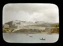 - a pentagonal lunette between Notre Dame Ravelin and St. Philip Bastion. It was damaged by aerial bombardment in World War II, but the damage was repaired.[30]