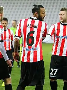 ![]() Bejan (center) playing for Cracovia in 2016 | |||