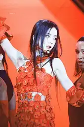- ↑ Ahn, Yun-ji (April 9, 2023). "'인기가요' 블랙핑크 지수, 레드+블랙 '꽃'..화려한 퍼포먼스" ['Inkigayo' BLACKPINK Jisoo, Red + Black 'Flower'.. Gorgeous performance]. Star News (in Korean). Archived from the original on April 24, 2023. Retrieved April 9, 2023.