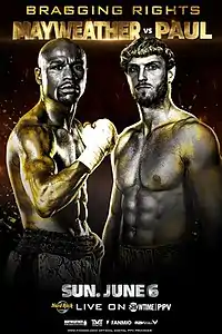 Floyd Mayweather Jr. vs. Logan Paul, billed as "Bragging Rights", was an exhibition boxing match between former five-division world champion Floyd Mayweather Jr. and YouTuber Logan Paul. It took place on June 6, 2021, at the Hard Rock Stadium in Miami Gardens, Florida.[1] The fight reportedly sold over one million PPV buys.[2]