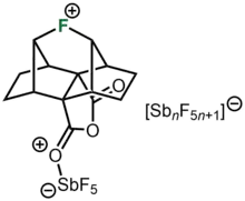 - ↑ Esteves, Pierre M.; Ramírez-Solís, Alejandro; Mota, Claudio J. A. (March 2002). "The Nature of Superacid Electrophilic Species in HF/SbF5: A Density Functional Theory Study". Journal of the American Chemical Society. 124 (11): 2672–2677. doi:10.1021/ja011151k. ISSN 0002-7863. PMID 11890818.