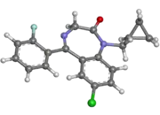 - ↑ Fukuda T, Itoh K, Nose T (March 1981). "[Antiulcerogenic action of 7-chloro-1-cyclopropylmethyl-1,3-dihydro-5-(2-fluorophenyl)-2H-1,4-benzodiazepin-2-one (KB-509), a new benzodiazepine derivative]". Nihon Yakurigaku Zasshi. Folia Pharmacologica Japonica. 77 (3): 273–80. doi:10.1254/fpj.77.273. PMID 7052359.