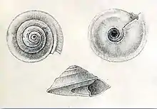 | Original drawing with three views of a shell of Fluxinella trochiformis | |