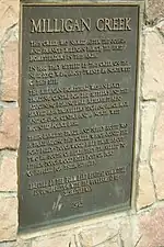 Plaque commemorating the Milligans near Foam Lake and Milligan Creek.