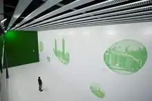 Exhibition room located between lobby and platforms