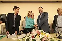 She was elected deputy again in the 2009 legislative election. In October 2009, newly elected Prime Minister George Papandreou appointed her Deputy Minister of Health and Welfare, office she held until September 2010.[3] From September 2010 to November 2011, she served as an Alternate Minister of Education, Lifelong Learning and Religious Affairs in the same cabinet.[1] In 2011, PM Lucas Papademos named her Deputy Minister of the Interior.[3] In 2012, Gennimata was appointed a spokesperson for PASOK[9] thus resigned from her cabinet position.[3]