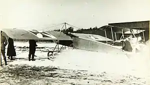 The Fokker A.I (Fokker designation M.8) was an "A-class" unarmed two-seat monoplane observation aircraft of the 1914-15 era early in World War I, powered as the earlier Fokker M.5 was, by a 58.8 kW (80 PS) Oberursel U.0 seven cylinder rotary engine, or umlaufmotor,[1] a near-clone of the Gnome Lambda rotary engine of the same power output level — the same U.0 seven cylinder rotary engine version was used on all Fokker military monoplanes before the Fokker E.II Eindecker fighter's debut in 1915-16. The A.I aircraft resembled a substantially enlarged Fokker M.5, with a tall dorsal cabane structure to handle the triple sets of stationary flying and landing wires anchored to the wing panels' forward spar, each panel having fourteen wing ribs, and the similarly triple sets of wing warping cables attached to the rear spar. The A.I and earlier A.IIs were both built by Fokker and license-built by Halberstadt.[2] The origins of the A.I, A.II and A.III were in a Morane-Saulnier Type H purchased from France. This led to the initial Fokker M.5 airframe designed by Martin Kreutzer, from which the larger A.I was derived. Fokker gave many aerobatic demonstrations in the M.5 on the eve of World War I. The M.8, was ordered as the A.I by the Fliegertruppe (Imperial German Army Air Service) and between Fokker and Halberstadt, about 63 were produced.[3]