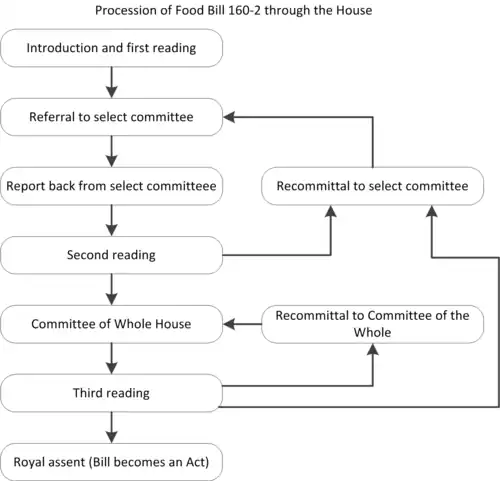 It was introduced as the Food Bill 160-2 on 26 May 2010 to make some fundamental changes[2] to New Zealand's domestic food regulatory regime. Significantly, for an export led economic recovery for New Zealand, the domestic food regulatory regime is the platform for exports.[3] The New Zealand domestic standard is used as the basis for negotiating equivalence arrangements with trading partners. This minimizes the excessive importing country requirements that may be imposed but which do not go to food safety. If passed into law and fully implemented, it would replace the Food Act 1981 and the Food Hygiene Regulations 1974. Food Bill will also make consequential amendments to the Animal Products Act 1999 and the Wine Act 2003 to improve the interface of regulatory processes across food sectors.