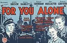 For You Alone is a 1945 British World War II romance melodrama, one of only two films directed by cinematographer Geoffrey Faithfull, starring Lesley Brook, Dinah Sheridan and Jimmy Hanley. The film was made by a smaller studio, Butcher's Films – more known for turning out quickly and cheaply shot B-movies – and had a lack of (at the time) star names, but appears to have been a relatively sophisticated and well-financed production. On its release, three weeks after V-E Day, the film became a huge popular success, seeming to catch the mood of a nation just beginning to emerge from war.