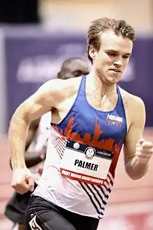 After graduating from Monmouth in 2013, Palmer began working as a bartender while training under coach Frank Gagliano with New Jersey New York Track Club.[4] In early 2014, he was close to quitting the sport as he worked some overnight bar shifts in order to support himself.[4] He made a career breakthrough on August 1, 2014, when he won the Sir Walter Miler in 3:57.61, his first ever mile under four minutes.[6] In January 2015, Palmer signed a professional contract with Hoka One One.[5] The following year, he raced in the men's 1500 meters at the 2016 US Olympic Trials, but did not progress beyond the first heat.[2]