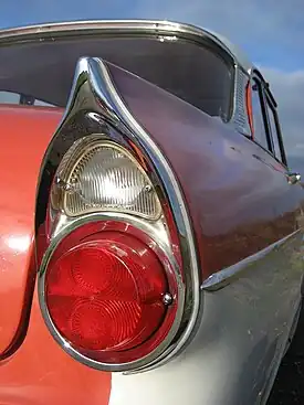In addition to the relatively mild "baroque“ insult, Ford's new middle-weight quickly gained other informal names including "Gelsenkirchener Barock“ and "Fliegender Teppich“ (Flying carpet). Gelsenkirchener Baroque, a term frequently applied to the Taunus P2 in press reviews, was a style more generally associated with heavy furniture in the newly confident German empire during the closing decades of the nineteenth century. The style, which contrasted with the uncompromised functionalism more usually associated with German design in recent decades, enjoyed a brief revival in the 1950s. Competitor automakers at this time also emulated US styling cues, using large amounts of chrome on the body work and incorporating exaggerated fins, but in 1957 it was nevertheless hard to find any Borgward or Opel decorated with more chrome, nor featuring longer or larger tail fins than the Ford Taunus P2. The sharp “markers” atop the four wings of the car did nevertheless confer a practical benefit by making it very easy to determine, from the driver's seat, precisely where the car ended. The forward ones also positioned the turn signals high and in a spot where they could be seen through more than 180 degrees.