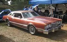 1976 was the last model year for the sixth generation. Some items that were standard in 1975 were moved to the options list. Some items returning to the option list included, AM/FM stereo, front cornering lights, and tinted glass. Additionally the rear windows became stationary. This move was to keep cost down and was also shared by the 1976 Mark IV. The 1976 luxury groups were crème and gold ($793), lipstick ($546), and Bordeaux ($700). New options included driver's lighted vanity mirror ($43), power lumbar drivers seat ($86), AM/FM stereo search radio ($298), and AM/FM stereo radio with Quadra sonic 8-track tape player ($382). An auto dimmer was added to the autolamp option. Base price was $7,790 ($40,062 in 2022 dollars[5]) with a total of 52,935 cars produced.[1]