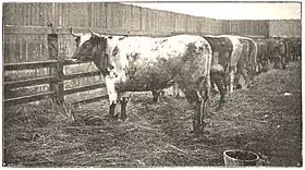 Of all the cattle ever landed at Deptford market, the largest proportion came from the U.S.A.[82] The practice started in 1878 when American cattle and pigs were "scheduled" for port slaughter.[83][84][85] By 1913, when Deptford closed, 3,144,400 American cattle had been landed there, besides sheep and pigs.[86][87]