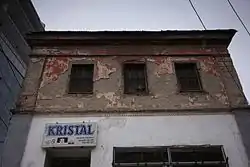 The former home of the municipality of Vushtrri's Historical Archive is two-story and was built of brick on a stone foundation. The ground floor includes a renovated western façade with a shop window, but the first floor is preserved in its original form inside and out. The western and northern front façades have wood-framed lighting racks with metal railings and a jagged ceiling. The north side front door today has its original half-arch molding. The Communal Historical Archives were founded on 3 March 1968, initially run by the Legal and General Affairs Administrative Directorate of the Municipal Assembly of Vushtrri.[2]