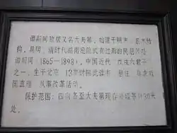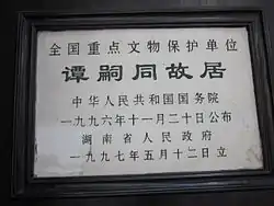 The Former Residence of Tan Sitong or Tan Sitong's Former Residence (simplified Chinese: 谭嗣同故居; traditional Chinese: 譚嗣同故居; pinyin: Tán Sìtóng Gùjū) was built in the late Ming dynasty (1368–1644). It is located in Liuyang, Hunan.[1][2][3][4] The house occupies a building area of 760-square-metre (8,200 sq ft) and the total area over 1,200-square-metre (13,000 sq ft).[1]