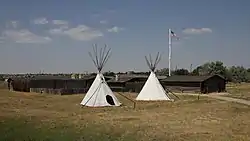 ![]() Reconstructed buildings at the site of Fort Caspar | |