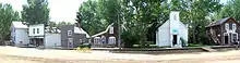 As of 2021, Fort Edmonton Park is made up of five sections, four of-which represent an era, all spread over 158 acres (64 ha).[5] The park is located along the south bank of the North Saskatchewan River in southwestern Edmonton. The first section contains the Indigenous Peoples Experience, followed by a replica of the fort in 1846, 1885 Street, 1905 Street, and 1920 Street.[6] Visitors may board a fully functional steam train at the park's entrance which transports them across the length of the park to the fort, from which they proceed on foot and abstractly move forward through time by visiting all five areas.