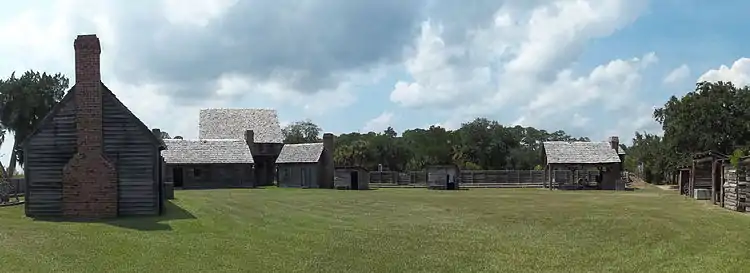 Fort King George State Historic Site is a fort located in the U.S. state of Georgia in McIntosh County, adjacent to Darien. The fort was built in 1721 along what is now known as the Darien River and served as the southernmost outpost of the British Empire in the Americas until 1727. The fort was constructed in what was then considered part of the colony of South Carolina, but was territory later settled as Georgia. It was part of a defensive line intended to encourage settlement along the colony's southern frontier, from the Savannah River to the Altamaha River. Great Britain, France, and Spain were competing to control the American Southeast, especially the Savannah-Altamaha River region.
