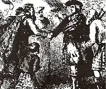 Thus, in late 1735 Oglethorpe sent Captain Dunbar and Lt. Hugh MacKay to the Highlands of Scotland to recruit potential settlers for Georgia's Altamaha frontier settlement. Many Scots were eager to come. Home life was rough due to English oppression and a feudal system that tied many Scottish families to small unproductive lands with limited opportunities, but North America offered plenty of hope. To lure them, the Trustees offered each family 50 acres (200,000 m2) allotments, something most Scotsmen never even dreamed of owning in their homeland. Also, recruiters told the Scots each man would be armed with a firelock, a broadsword, and an axe. Recently, the English had passed laws disarming the Scots and making it unlawful for them to bear their traditional weapons. They were also to be given cattle, farming implements, and seed for crops. 177 Scots boarded the Prince of Wales in November 1735, en route to their new home in Georgia. Of these, most came from the Inverness area and were a part of the Chattan Confederation. They consisted of McIntoshes, McDonalds, MacBeans, MacKays, Frasers, Forbes, Clarks, Baillies, Cameron, and a host of other traditional Highland clan names.[79] They disembarked at Savannah in early January 1736, and a short time later made their way to the new settlement on the Altamaha. Their settlement began at "Barnwell's Bluff", near the old ruins of Fort King George.[80]