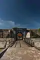 The fort has a rectangular layout, with an arrowhead-shaped bastion on each corner. The entrance to the fort is in the southwest, protected by a ravelin. A dry moat follows the trace of the fort. A wooden bridge spans the ditch that separates the main building from the front building. The southwest side has an arch entrance with a wooden door.[1] The fort encompasses 2.7 hectares, and stands on a site of 4.4 hectares.