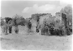 After the Civil War Fort Washita was never reoccupied by the United States military and the grounds fell into disuse. On July 1, 1870, the War Department handed over the fort grounds to the Department of the Interior. The passage of the Dawes Act in 1887 and the Atoka Agreement in 1897 divided the communal lands of the Chickasaw Nation, including Fort Washita, into allotments owned by individual Chickasaw citizens. The Colberts, a prominent Chickasaw family, received the allotment of grounds including the fort. Department of Interior turned land over to Abbie Davis Colbert and her son.[9] Charles Colbert turned the existing east barracks into a personal home and the site was used as a farm for many years. The remaining buildings were used in a farming capacity. The Colberts also used the cemetery as a family cemetery. The old west barracks continued to serve as the Colberts' household until it burned down in 1917.[26]