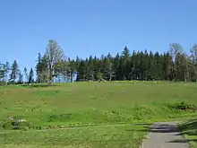 The blockhouse of the fort was moved to a park in downtown Dayton in 1911 to honor city founder Joel Palmer.[6] The actual site of the fort grounds, which is in the Willamina vicinity, has been listed on the National Register of Historic Places since 1971.[7] The address of the site is withheld,[7] however the Oregon Parks and Recreation Department runs the undeveloped Fort Yamhill State Heritage Area in partnership with Polk County and the Confederated Tribes of the Grand Ronde.[6] As there are no remaining buildings at the fort grounds except a relocated Officer's Quarters building, the parks department plans to reconstruct some of the fort buildings, including a new blockhouse.[6]