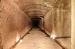 In 1889 an underground troop shelter was constructed just outside the perimeter to the southwest.[1] From 1893 the fort was linked to other forts around Belfort via the Chemins de fer du Territoire de Belfort strategic railroad. Underground galleries shielded with concrete were built beneath the fort during the First World War. These galleries connected various portions of the fort to the troop shelter, which was itself concreted. Additional improvements included a 155mm gun turret, three machine gun turrets, an additional casemate and shelters on the ramparts. The neighborhood of the fort received more batteries, a 75mm turret, infantry shelters and a battery with two 155mm gun turrets, the last never completed. The new gun turrets, located to the east of the main fort,[1] were connected to the main fort by extensions to the underground galleries.[2]