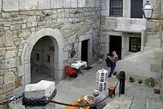 A rounded niche on the left, in granite masonry, shelters a representation in stone of the St. Francis Xavier, and to the right a similar niche houses an image of the Virgin Mary.[1] The tunnel connects to the courtyard, covered with metal grids and glass plates, that provide access to bar, powder magazine covered in barrel vault, stairs, balconies and gateways to the remaining dependencies. From the lobby there is an access ramp to the upper deck.[1]