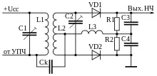 The Foster–Seeley discriminator[1][2] is a common type of FM detector circuit, invented in 1936 by Dudley E. Foster[3] and Stuart William Seeley. The Foster–Seeley discriminator was envisioned for automatic frequency control of receivers, but also found application in demodulating an FM signal.