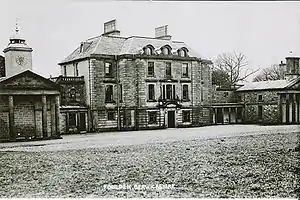 In the 17th century the barony of Foulden and its lands were conveyed to Sir John Wilkie, a rich burgess of Lanark. In 1696 John Wilkie's residence in Foulden had six taxable hearths, virtually everyone else in the vicinity having just one. Foulden remained with this family until they failed in the male line with James Bruce Wilkie of Foulden, a Captain in the King's Own Scottish Borderers Regiment, who died on 12 December 1935. The Wilkies were responsible for construction and original ownership of the village. The local manor, Foulden House, rebuilt by the Wilkies circa 1800, had a main Georgian block of three and a half stories, flanked by peristyled and porticoed two-storey pavilion wings. It was a casualty of the post World War II country-house demolitions.[3]