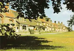 It has "one of the most striking village ensembles in the Borders" which incorporates the former school of 1881, all designed by John Lessels.[1]