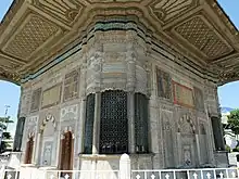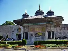 The Fountain of Sultan Ahmed III (Turkish: III. Ahmet Çeşmesi) is a fountain in the great square in front of the Imperial Gate of Topkapı Palace in Istanbul, Turkey. It was built under Ottoman sultan Ahmed III in 1728, in the style of the Tulip period. It was a social centre and gathering place during the Ottoman period of Constantinople.