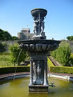 Medieval fountains could also provide amusement. The gardens of the Counts of Artois at the Chateau de Herdin, built in 1295, contained famous fountains, called Les Merveilles de Herdin which could be triggered to drench surprised visitors.[4]